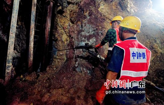 图为中铁六局赣深铁路项目建设者在隧道内施工。(中铁六局 供图)