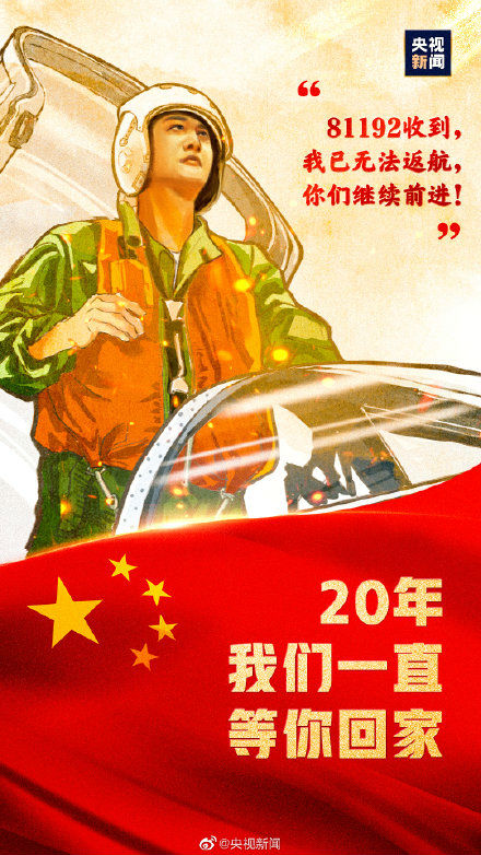 【81192我们等你回家】2001年4月1日,美国一架侦察机侵犯我南海领空,我军派出两架飞机跟踪拦截,美军飞机突然撞向我编号81192战机,“我已无法返航,你们继续前进!”飞行员王伟的生命定格在了33岁……今年4月1日,王伟牺牲20周年。王伟,等你回家!