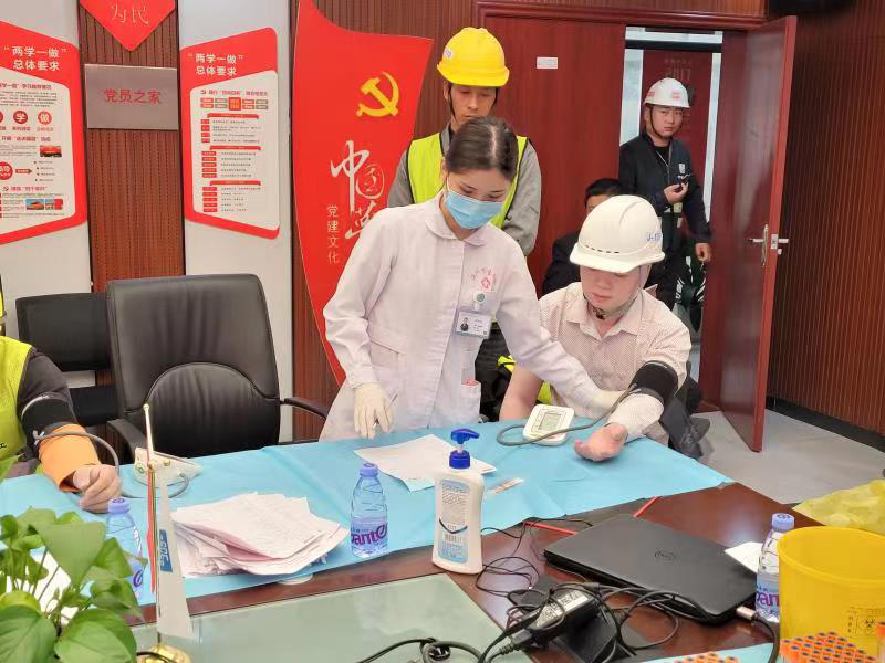 3月24日,为确保一线工人身体健康,项目点组织合作医院医护人员来到项目部,为全体工人免费做了包括内科常规检查、肝功五项、胸透、心电图、血压、血常规、心肌酶、肾功能等项目的检查。23日下午,项目管理人员邀请宝安区总工会多名义工为60名一线工人理发。