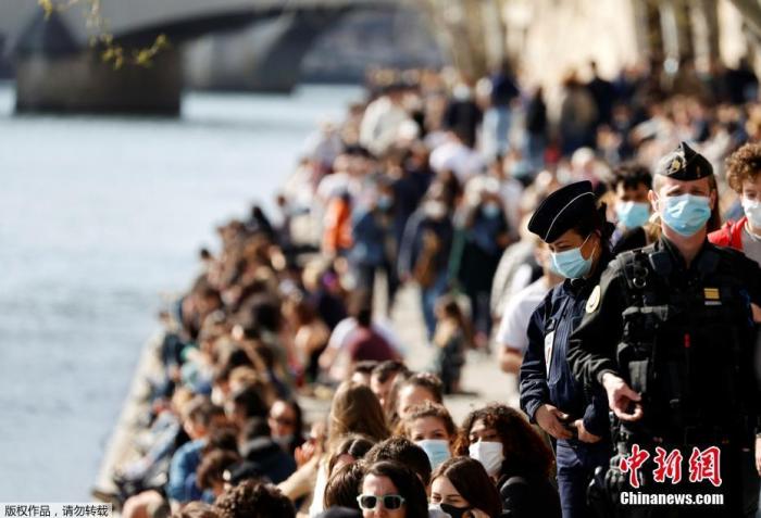 资料图:当地时间3月28日,法国巴黎,大批民众在塞纳河畔享受春日阳光。