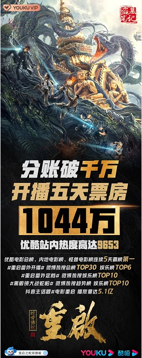 电影上映后,获得了广大原著粉以及影粉的高度关注,3月26日上线后博得观众满堂彩,成绩口碑双丰收。电影上线当日票房285万,优酷站内热度破9000,强势登顶优酷电影热度榜、怪兽电影热榜和内地电影热榜,创造2021年网络电影首日分账票房新纪录。上映5天也突破千万佳绩。