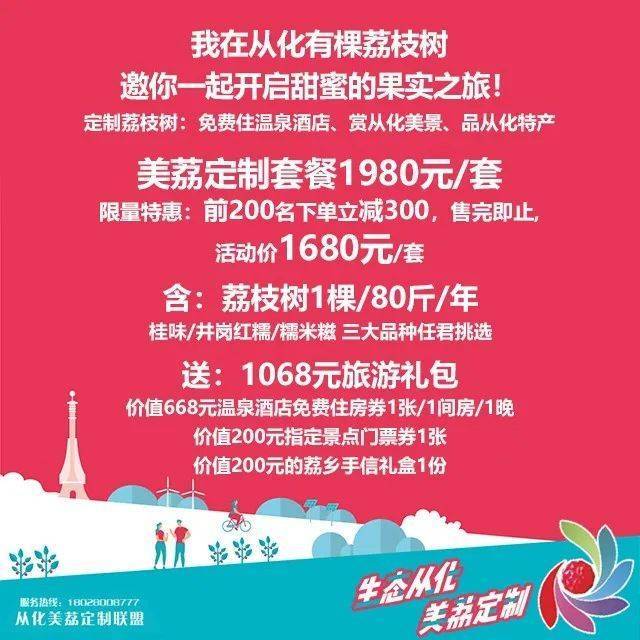 “今年我们实行农旅结合,推出‘美荔定制’新模式,按照结算价来算,比往年要更加实惠。”欧阳建忠介绍,今年的荔枝定制不仅可以按定制人的需求,对荔枝树进行私人化、个性化的包装,而且赠送价值1068元的旅游礼包一份,包含酒店住宿、景点观光、手信礼盒等诸多优惠。