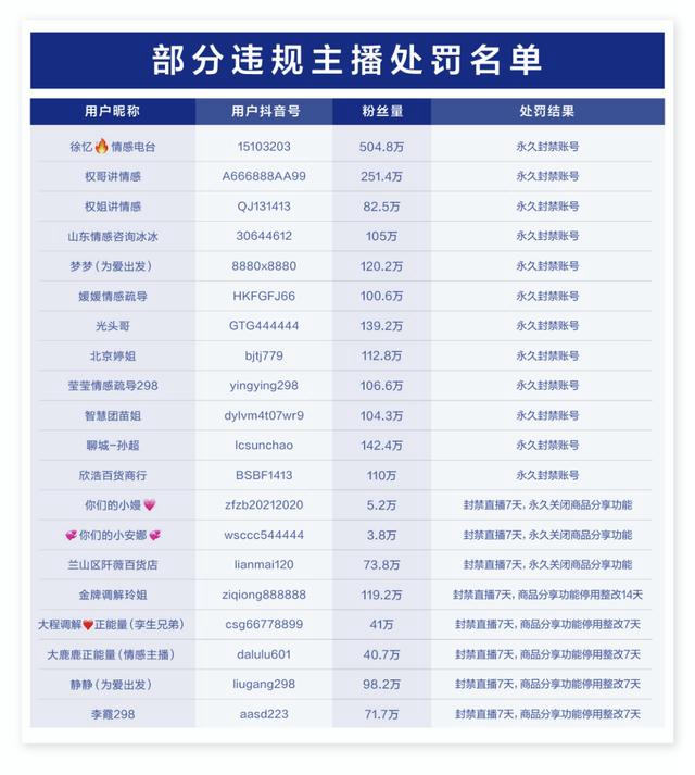 抖音处罚名单