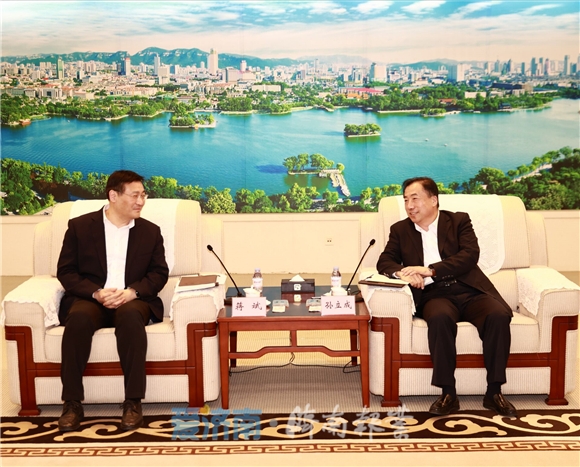 孙立成代表市委、市政府对国网山东省电力公司长期以来对济南经济社会发展的支持表示感谢。他说,一直以来,国网山东省电力公司积极参与济南经济发展、城市建设、民生改善等领域,为服务重大项目建设、服务地方经济发展作出了重要贡献。“十四五”时期是济南落实黄河流域生态保护和高质量发展重大国家战略,落实“强省会”重大战略,加快“五个济南”建设,全力争创国家中心城市的关键五年,也是加快建设清洁低碳、安全高效的能源体系,推动“碳达峰、碳中和”目标实现的关键时期。希望国网山东省电力公司一如既往地全力支持济南市电力供应保障工作,在电网建设、服务重点区域建设、新能源汽车、推动能源绿色低碳转型等方面深化合作,推动合作协议尽快落地见效。济南将全力以赴为项目落地提供优质服务和要素保障,创造良好发展环境。