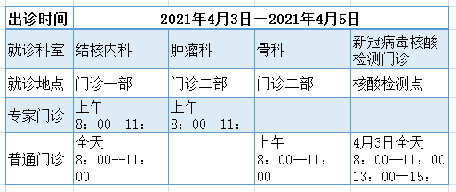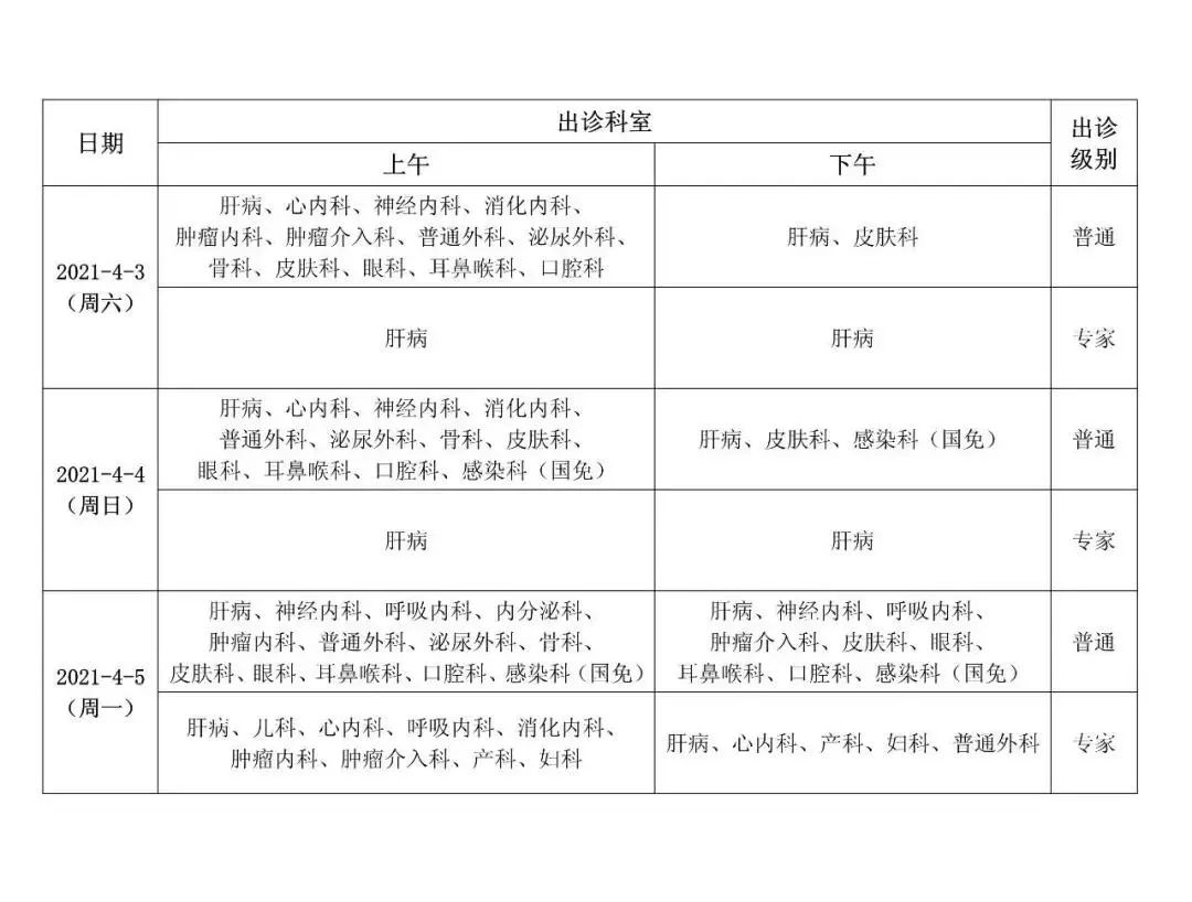 2、2021年4月3日至4月5日部分专家出门诊。