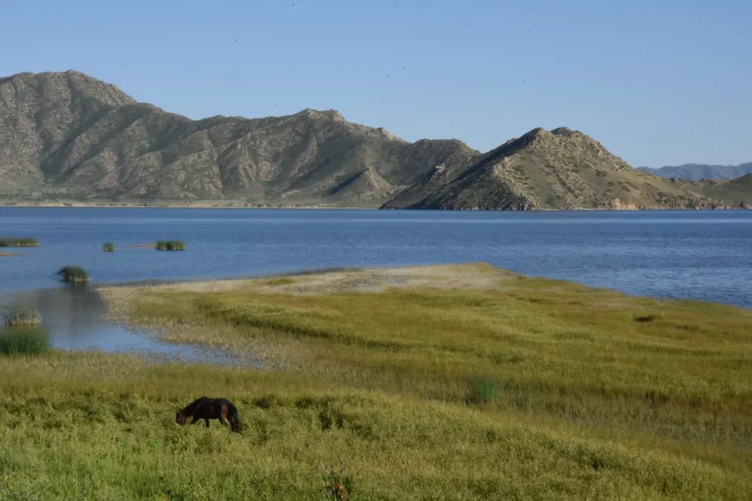 当一汪澄澈的湖水霍然出现时,我们已从石头山的山南翻至山北。湖水镶嵌在大山间一片低洼处,湖畔摇曳着发黄的芦苇秆。车辆下山的用时只有上山时的四分之一,似乎前一秒还在车厢内极目远望,下一秒就在湖岸边沐风而立。湖的名字叫可可苏里,是一处天然沼泽湿地。距可可苏里湖不远,还有一汪名为伊雷木的湖泊。地质工作者介绍,两个湖都是由多期构造作用下的湖盆积水而成。