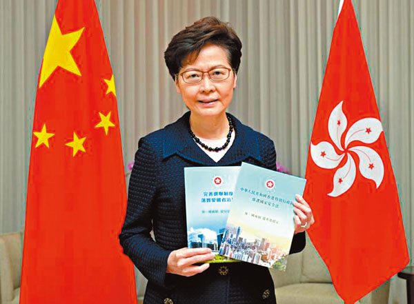 她说,做大事需要天时、地利、人和,若非有人鼓吹"港独""35+"" 揽炒",及立法会自第六届起出现乱象,特区政府及她都不会看出事件的必要及迫切程度。香港特区自身没有能力制订香港国安法及完善香港选举制度,从"一国两制"来看,重大的宪政秩序及体制问题由国家最高权力机关来处理,是完全正确,合宪、合法、合理的。她为可以完善"一国两制"而感到安慰。