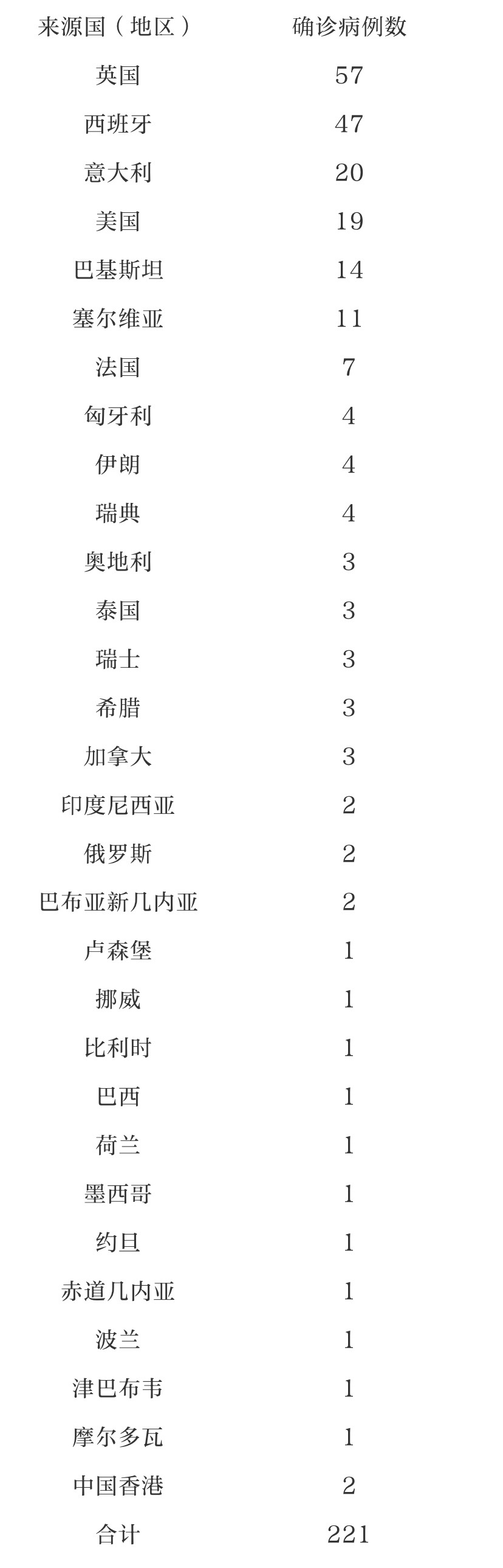 境外输入确诊病例来源国(地区)情况