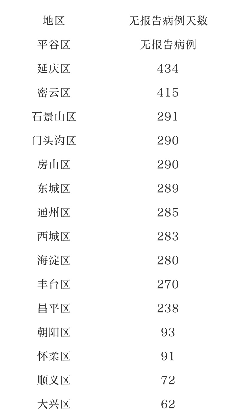全市16区无报告病例天数情况