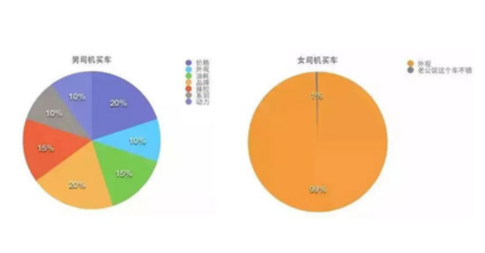 男人选车时,更加理性。在这方面不管是数据还是实际生活中,女性都要更依赖男性。也就是说,车内设施主要讨好的人群还主要是男性。