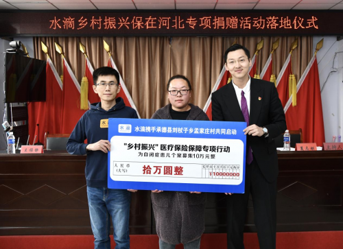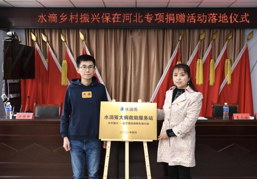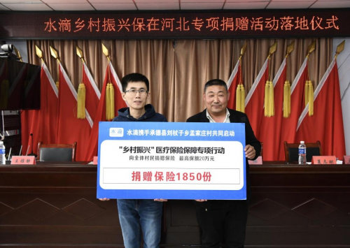 2021年4月2日,水滴公司与河北省承德县刘杖子乡孟家庄村共同启动“乡村振兴——医疗保险保障专项行动”,未来双方将在医疗保险、大病筹款及公益救助等方面为村民提供切实帮助。每位村民可获得最高保额20万元的保险一份,1800余人将接受保障,实现一村全覆盖。