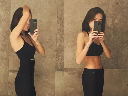 许玮甯最近在社群平台上PO了三张自拍照,只见前两张她身穿黑色运动内衣,微微露出事业线,下身搭配同色系裤子,合身的衣服剪裁使S型的身材曲线尽露,几乎找不到一丝赘肉;第二张她的身体转到更侧面,右手举高到头部,无蝴蝶袖的纤细手臂令人惊艷,更厉害的是,腰部宛如柳条般柔软纤弱,歌手许茹芸忍不住大呼:“夸张了妳!小蛮腰”炎亚纶也目测可能只有22吋。