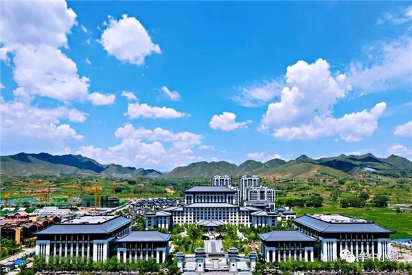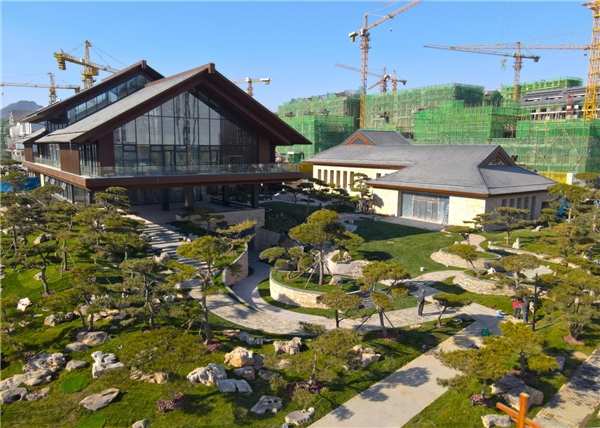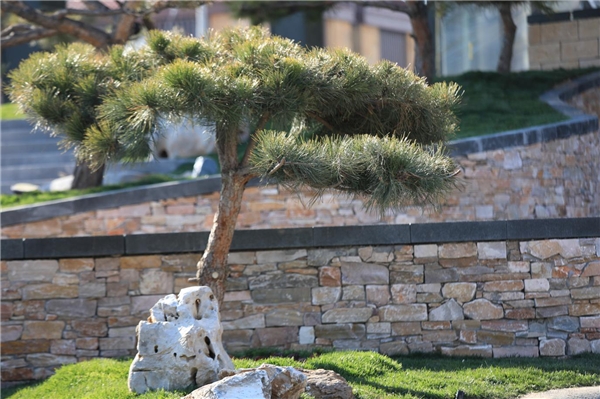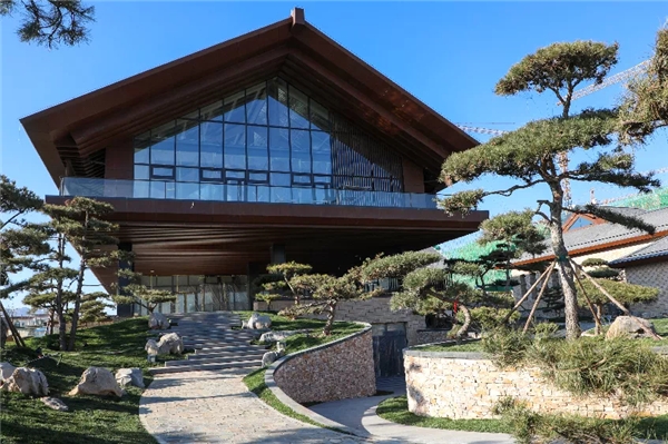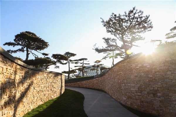入口处,以“一山两脉”为设计手法,再现太行山势之巍峨。进园,古井引出潺潺泉水,激荡水流拍打着大小不一的卵石,叮当作响。沿路,99棵松,青翠苍劲,或径直参天,或延枝迎客,或蜷曲偃卧……在天地间为美竞生。风拂松动,仿若在建筑间起舞,与潺潺泉水交织成曲,醉了心扉,美了日子。