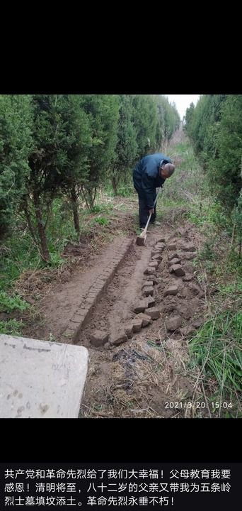 “我们这是用当地农村传统方式祭奠烈士。”卞康全说,“取完土后还要把这块地的土弄碎,意思是希望不要再有牺牲,不要再添新坟。”每年清明前,卞康全都要为烈士墓添抔新土……