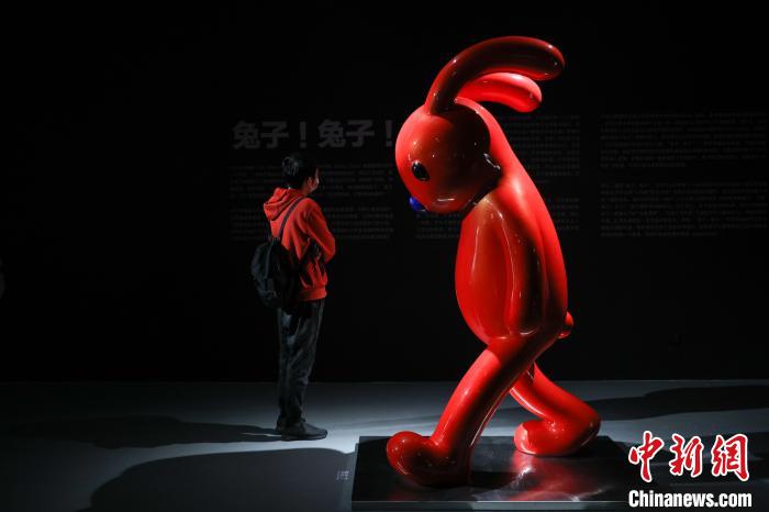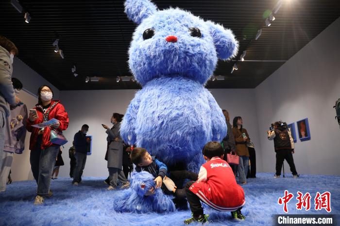 中新网上海4月3日电 (记者 张亨伟)3日,“治愈系”艺术家张占占携其知名PUPU熊与新作兔子雕塑在上海宝龙美术馆举办了他的首个美术馆级大型展览。