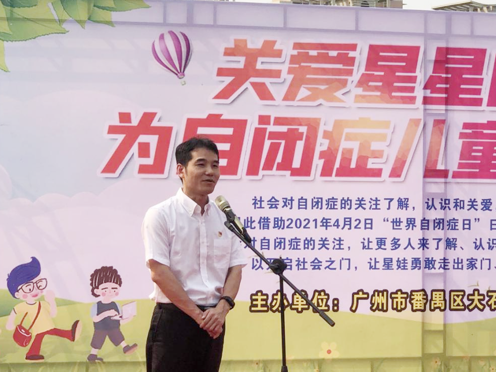 活动现场,大石街道办事处副主任朱国华首先致辞,他指出,2021年4月2日是第十四个世界自闭症日,但对这个群体儿童的关注不只是今天,而应该是常态化的关注和关爱,并提出了三点希望:一是希望以后能举办更多这样的活动,提高社会对星星的孩子的了解和关注;二是希望康复机构加强教师队伍建设,让星星的孩子们得到更为专业化、精准化、高质量的康复服务;三是希望更多社会力量能为星星的孩子们提供更多的资源,积极加入到服务他们的队伍中来。
