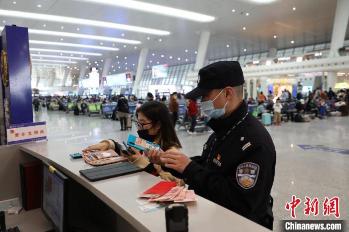 执勤民警加强杭州东站安检区域盯控。韦士钊 摄