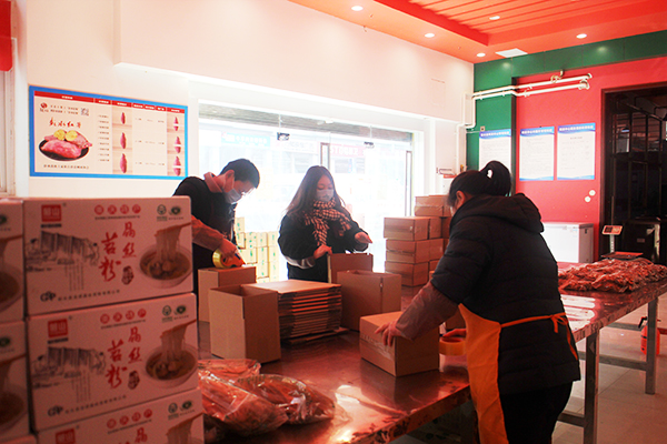 县网货中心工作人员在打包发货。通讯员 杨丽媛 摄