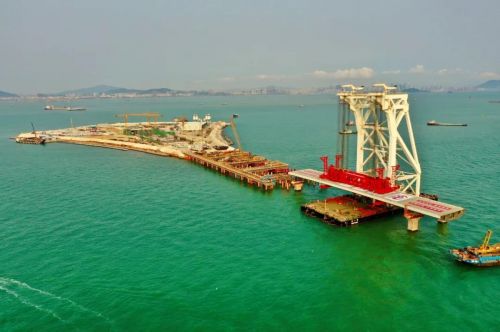 目前,深中通道建设有序推进。桥梁工程已完成主桥桩基、承台施工,正在进行主塔、锚碇施工。岛隧工程方面,东、西人工岛建设有序开展;沉管隧道已完成共8个管节沉放对接,建成长度达1278.5米,正筹备E9管节沉放安装。