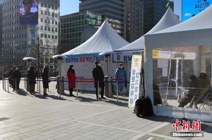 资料图:图为首尔市江南三成站地铁站附近,民众在临时筛查站外等待检测。中新社记者曾鼐摄