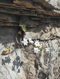 清明时节,门头沟的一面山崖上,一簇簇白色花朵迎风绽放,在灰黄色的崖壁映衬下,尤其动人。“大约3月30日,我们发现槭叶铁线莲长出了花骨朵。”京西林场森林资源保护科科长曹治锋说,天气转暖,这几天花朵一下子开满了山崖。这种小灌木极为精致秀气,五六个白色花瓣围着蓬松的绿色的花蕊,傲然长在崖壁上。