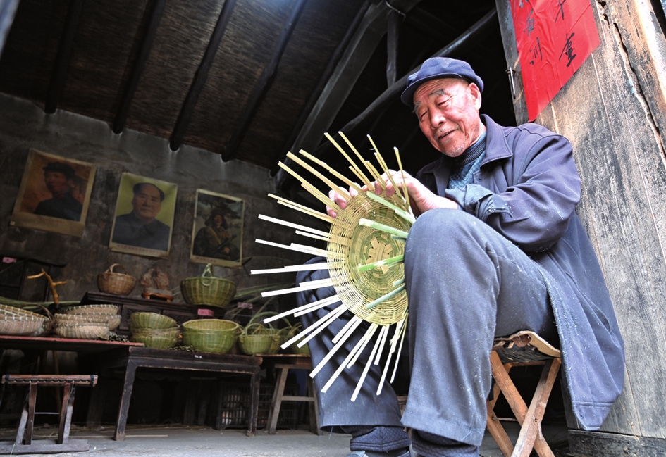 老人编织工艺品