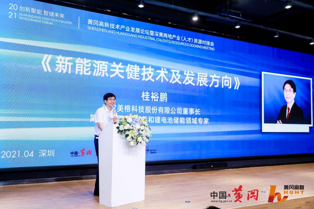 作为黄冈光谷联合科技城的优秀代表企业,武汉美格科技股份有限公司董事长桂裕鹏博士带来主题演讲《新能源关健技术及发展方向》。桂博士深入浅出的阐述了新能源产业的两大关键技术及发展现状,他表示建设移动能源产业加速器,产业价值巨大,市场前景广阔,深黄两地企业、创业者共同链接资源,可以赋能光伏产业发展,实现产业规模化。
