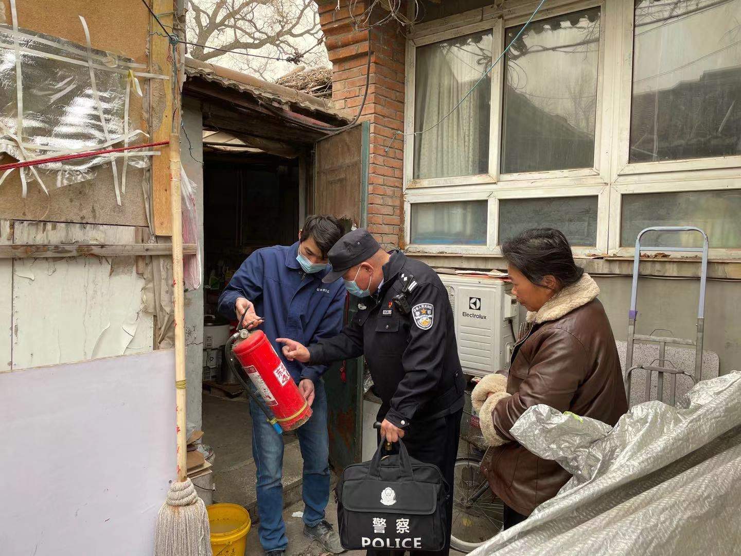 “保温杯、充电宝、警用电台、手套、告知书、消防提示海报、办案需要的手册文件等,这些都在这个包里了。”细细检查一下自己的“移动警务室”,景立新带着记者走进九道湾胡同。