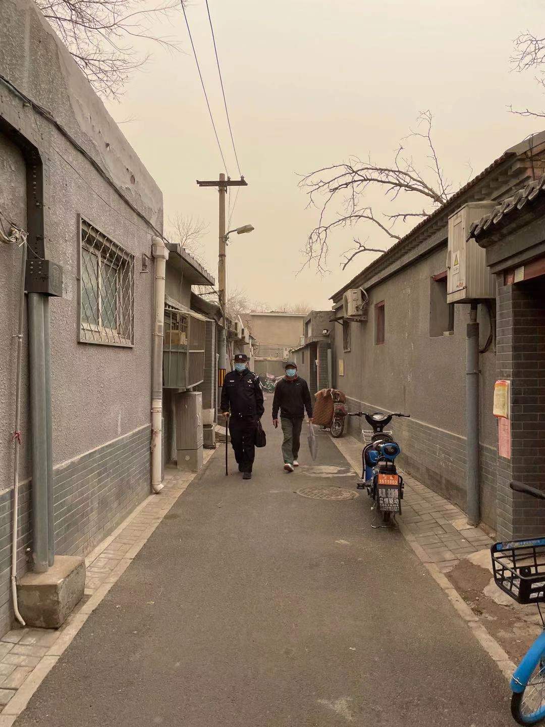 慢慢走在九道湾里。旁边的街坊说,在这儿溜达,分不清东南西北的人太多了。景立新解释道,九道湾社区得名于九道湾胡同,这条胡同七拐八扭,走向非常复杂。要是路不熟,有事儿发生的时候,找地方就得找半天。但这个对他而言早已完全不是问题。