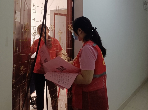 “扫这个二维码,填写一下姓名、身份证等资料,居委会就会通过短信通知你们接种时间、地点的!”为提高社区居民知晓率及接种新冠疫苗的效率,荔湾南片海龙街道党员先锋队穿街走巷,挨家挨户进行宣传。