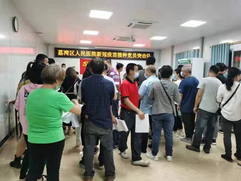 据了解,自广州市启动新冠疫苗大规模人群接种服务以来,荔湾区多措并举发力推进疫苗接种工作,通过党员志愿者扫“社区”宣传、发动疫苗接种,通过主动上门扫“企业”、 遍地设点扫“市场”等措施给工作忙碌的上班族、专业市场从业者以及人流密集区接种疫苗创造便利条件。