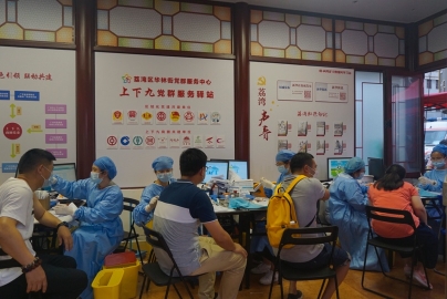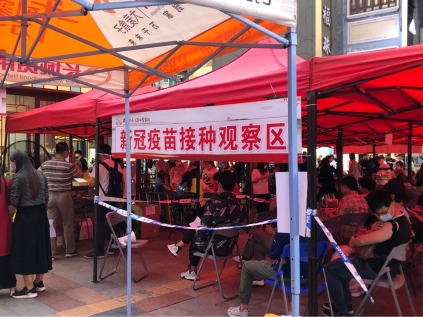 华林街辖内华林玉器市场是全国闻名的大型玉器市场,从业人员多、人员密集,辖内又有大型的上下九步行街,人流量大,来穗人员多。为了给专业市场从业者以及步行街工作人员接种疫苗创造便利条件,4月2日、3日两天,荔湾区在位于上下九广场的上下九党群服务驿站处设立荔湾区北片新冠病毒疫苗大型接种点。华林街道组织辖内专业市场人员、辖区居民集中接种,荔湾中医医院派出医护人员保障疫苗接种工作。