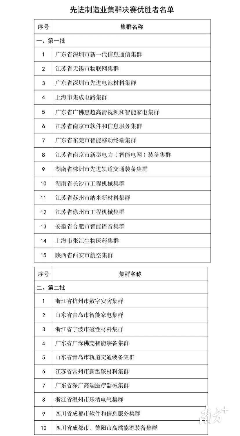 值得一提的是,此次上榜集群中,深广高端医疗器械集群和广深佛莞智能装备集群为跨地区产业集群,前者深圳有迈瑞、华大基因等一批行业领先企业,后者深圳则有研祥、中集等行业龙头,粤港澳大湾区城市间产业分工协作,将成为重要趋势。南方+后续将带来更深入的采访和解读。