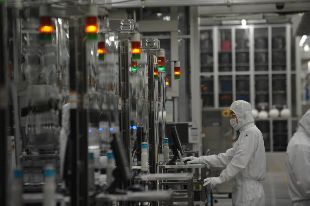 2011年6月10日,工作人员在日本茨城县瑞萨电子公司工厂内工作。新华社发(关贤一郎摄)