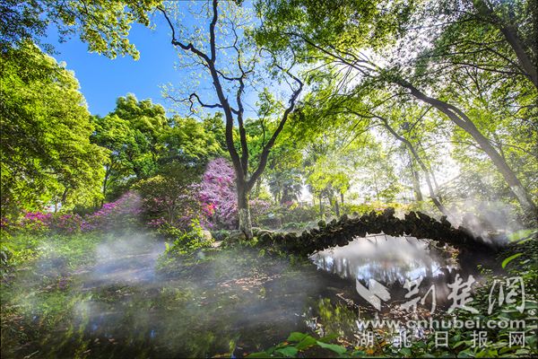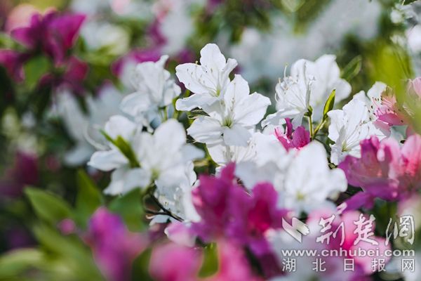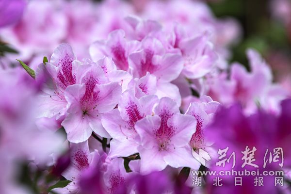 荆楚网(湖北日报网)讯(通讯员陈长丽)最美人间四月天,“花中西施”杜鹃接力登场成为春花主力。在武汉植物园,5万株杜鹃恣意开放,园内各处杜鹃簇拥枝头,织锦堆绣,漫山红遍,美不胜收。园区重新修缮提升了杜鹃园雾喷景观,云雾缭绕中,万千杜鹃灿若云霞若隐若现,宛若人间仙境。