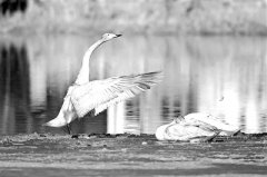 北京延庆区海坨山下春水暖 天鹅小憩冰面融~