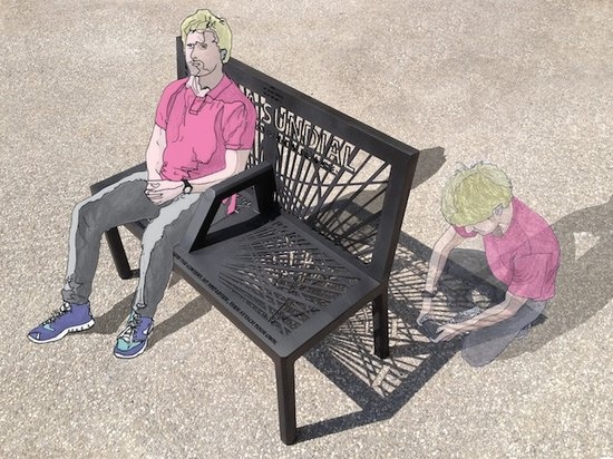 “巨石”上有两个圆形的USB内嵌式接口,用以收集太阳能并为手机等移动设备提供充电电源,同时它还具备追踪周围噪音级别、天气、空气质量等环境数据的功能。下方的承重钢板则被刻意刷成红色,远远看去就像一个惊讶到下巴都掉了的卡通形象,让人一眼就能看出这些长椅的不同。
