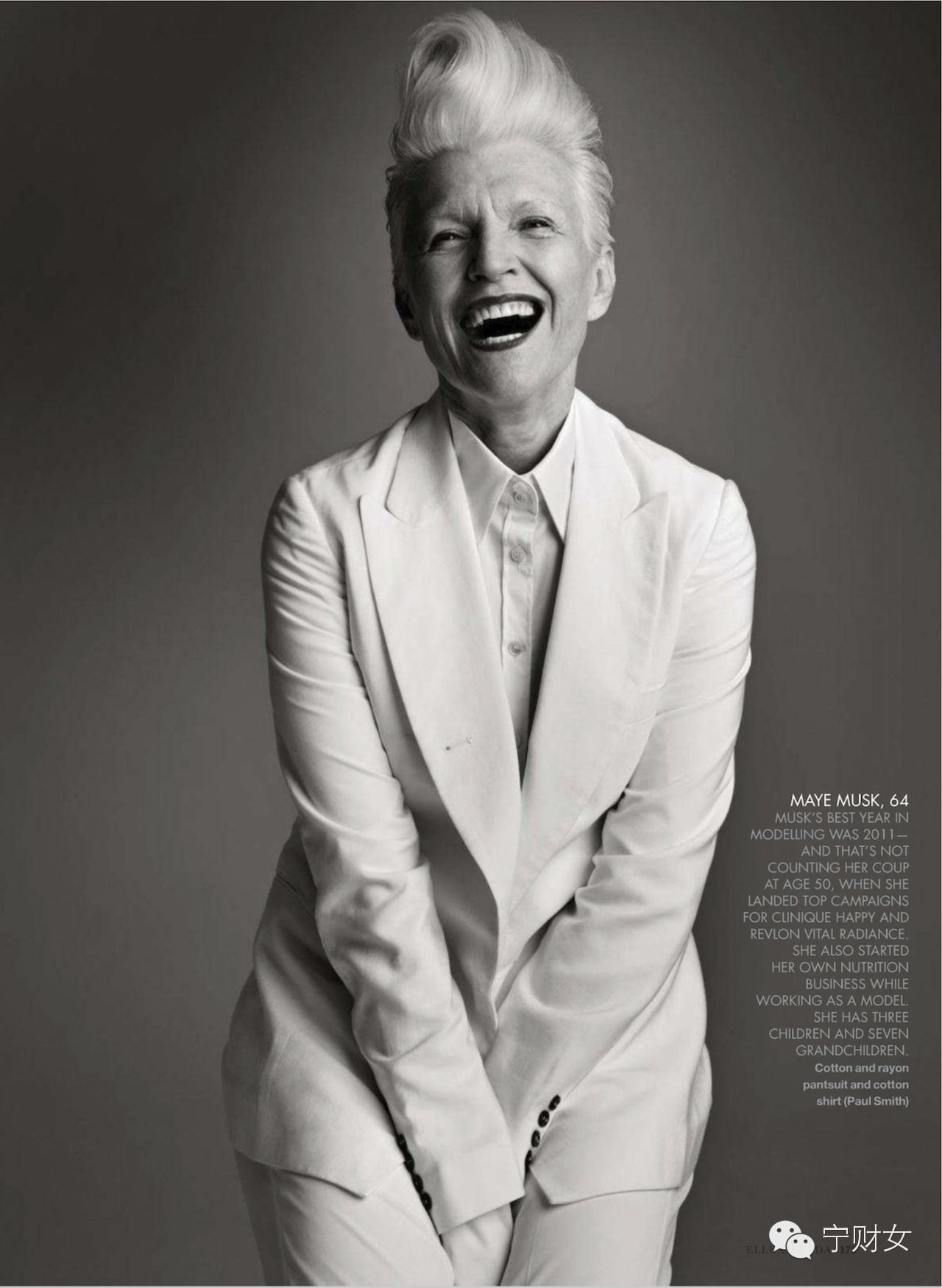 Maye最近的一次出名应该是2011年的纽约周刊的一期封面,63岁的她全裸,大着肚子9个月怀孕(当然是PS的啦)的样子。标题是:“她做这个会不会太老了呢?”——封面文章的内容是关于中年女性生育的探讨。还有一些人熟悉她在健康和长寿的营养学方面的研究成就。当然,她最出名的是:她的三个孩子中有一个叫做Elon Musk, 是财富杂志2013年年度商业人物得主。