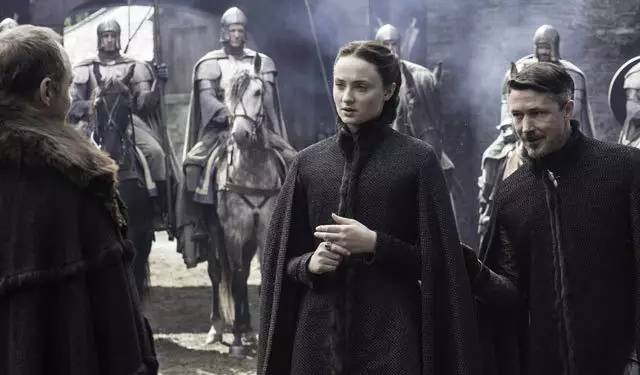 ▲图注:《权力的游戏》第五季,珊莎重新回到临冬城,面对仇人剥皮家族