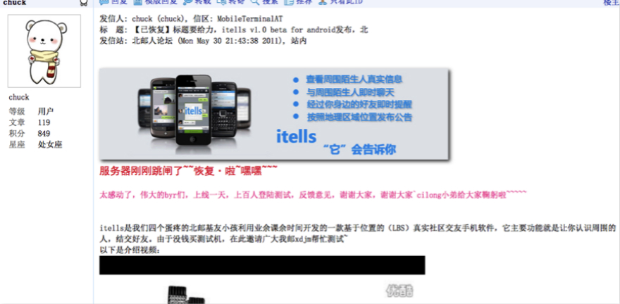 (2011年5月30日尹兴良在北邮人论坛里发的第一个帖子)