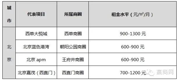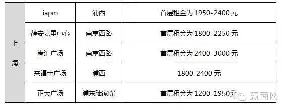 总结:根据以上一线城市购物中心租金水平,可以得出城市的平均水平一般在600-900元/平方米/月,首层租金在1500-3000元/平方米/月。