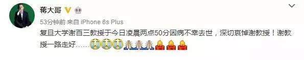 一位微博认证为“复旦大学国际关系与公共事务学院副教授”的人士就此发文悼念称“复旦大学谢百三教授于今日凌晨两点50分因病不幸去世,深切哀悼谢教授!谢教授一路走好”。