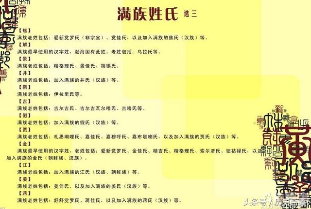 马佳氏改姓马,马景涛就是马佳氏后裔,富察氏名人有福康安,富察氏改姓富和傅。那拉氏就是慈禧的姓氏,这个姓改为那、南、叶等姓,那英和慈禧一个祖宗。