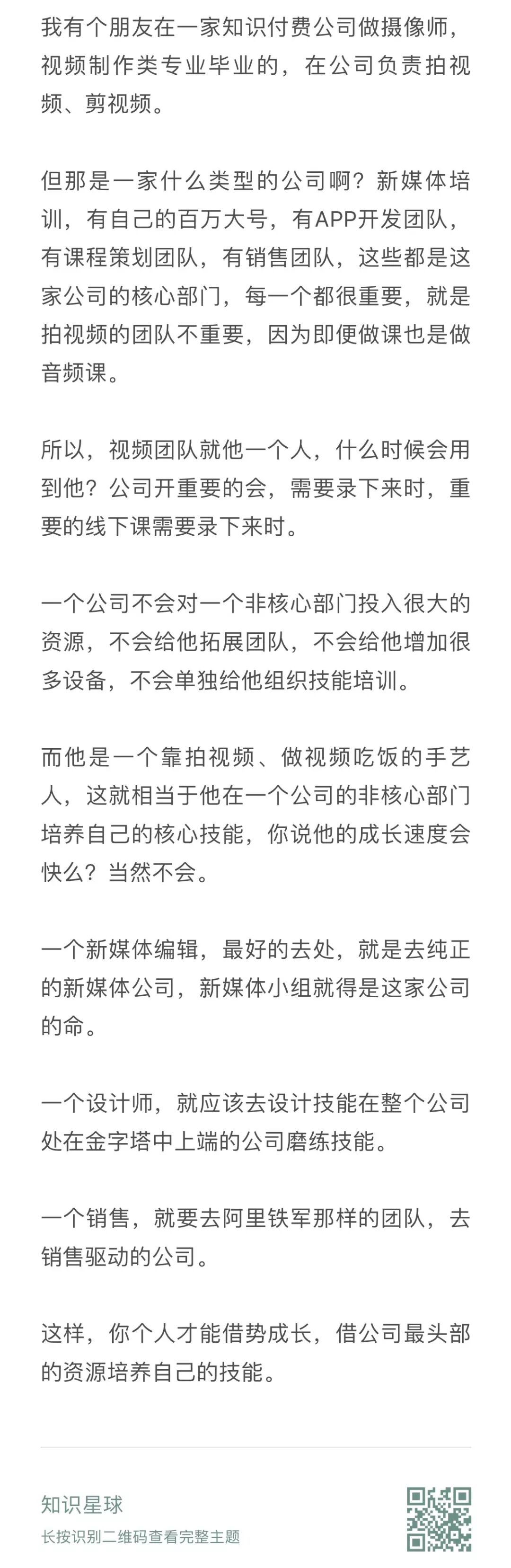 你能说这位女同学的能力差么,当然不能。体制里的这份工作,让她的成长速度被整个体系、整个环境带慢,如果这位女同学处在一日千里的移动互联网行业呢?大概率上,她的成长速度会被整个体系、整个环境所带快。