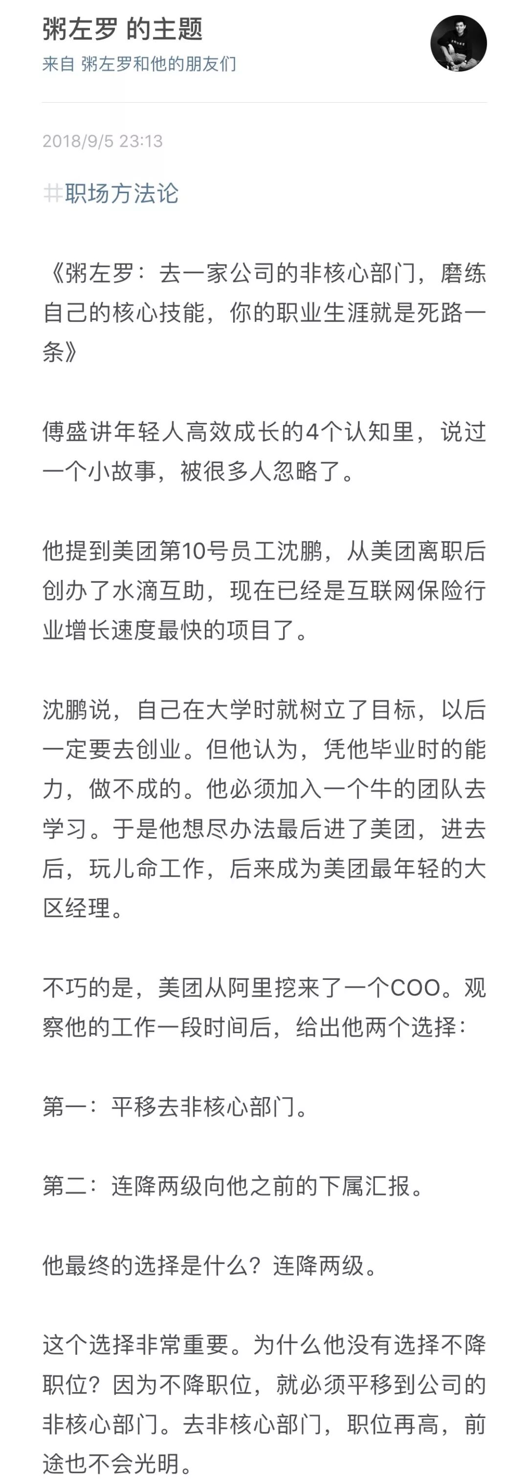 我有个朋友,2017年秋天加入了一家飞速成长的创业公司,我能明显感受到他过去一年的成长是巨大的,上周他们公司团建,回来后约我喝咖啡,他说团建开会时老板跟大家说了这么一段话: