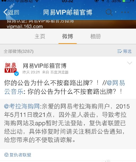 网易在被攻击40多分钟后,承认骨干网络被攻击。等看明天网易怎么说。