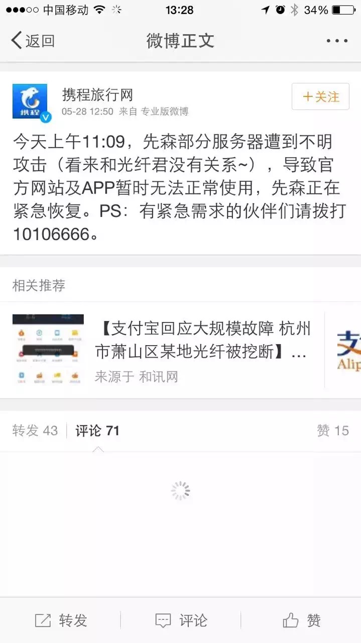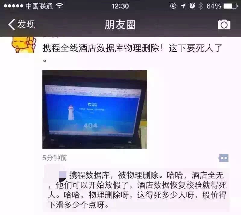 一般来讲,携程这样的公司一定会有异地备份,以防被攻击或者误操作,(顺便说,误操作的猜测也有的)。至少能恢复到宕机前,减少损失。