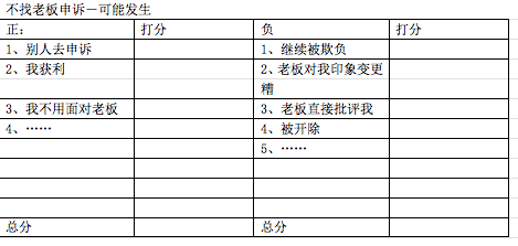 我有时候也会这样。不过有时候我会用一个办法,也就是很久以前看到的一个矩阵。比方讲,如果你想找老板申诉。