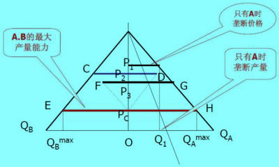 PCH = 0QA属于A厂商的最大生产能力,PCE = 0QB表示B厂商的最大生产量。