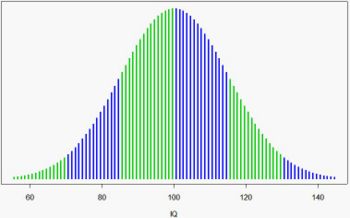 IQ测验结果接近于正态分布,颜色带表示标准差的大小